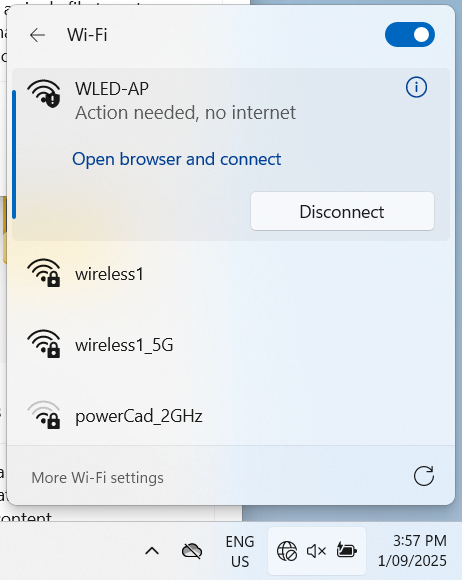 On your computer, open Wi-Fi settings and connect to WLED-AP.
